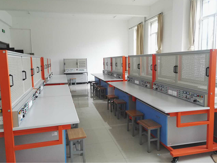 2、實訓桌桌面采用25mm麻灰色高密度層壓板封邊特制,有效提高絕緣等級;實驗桌底部裝有至少4個導向輪,方便實訓臺架移動;