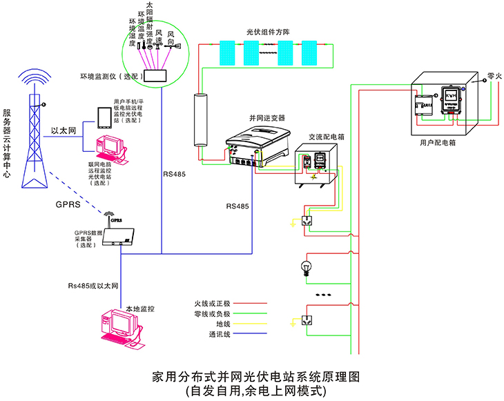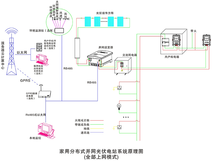 在晴朗的白天,裝在屋頂上的光伏組件發(fā)出的直流電經(jīng)過并網(wǎng)逆變器逆變成與電網(wǎng)同頻率同相位的單相交流電給負(fù)載進(jìn)行供電,在夜晚或陰雨天等太陽光照不足的情況下,系統(tǒng)處于待機狀態(tài),負(fù)載用電全部來自電網(wǎng)。您可以通過系統(tǒng)監(jiān)控軟件來實時查看系統(tǒng)的運行狀態(tài)和故障信息,或者是選配遠(yuǎn)程通訊數(shù)據(jù)采集器,將系統(tǒng)工作數(shù)據(jù)通過GPRS或以太網(wǎng),傳輸?shù)侥氖謾C、平板電腦或任意一臺聯(lián)網(wǎng)的電腦,以便于您遠(yuǎn)程實時掌控電站的信息。