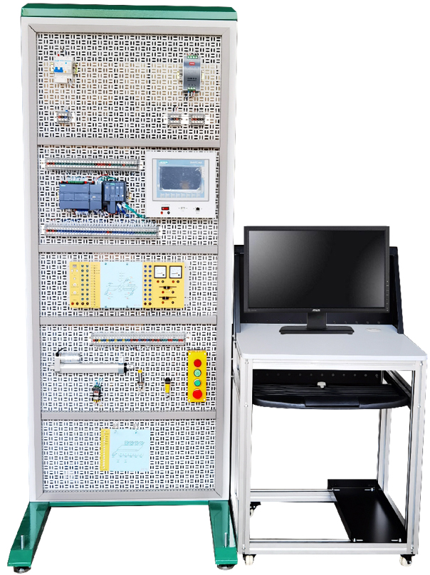 采用模塊組合式結(jié)構(gòu),含開關(guān)量、模擬量、變頻調(diào)速、觸摸屏、通信模塊等,配套工控組態(tài)監(jiān)控軟件,實(shí)現(xiàn)仿真化、信息化實(shí)訓(xùn)教學(xué)。