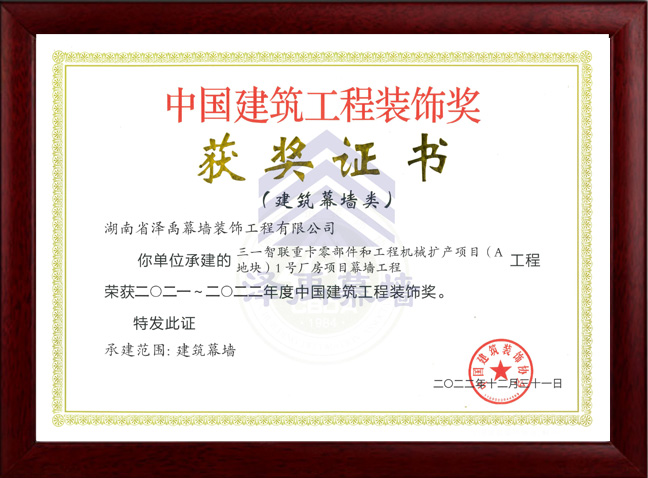 中國(guó)建筑工程裝飾獎(jiǎng) 獲獎(jiǎng)證書(shū)