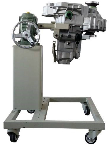 采用減速翻轉(zhuǎn)機構(gòu),可使變速器旋轉(zhuǎn)任意角度,并能任意位置鎖止,便于學(xué)生從不同的角度進行拆卸和裝配。