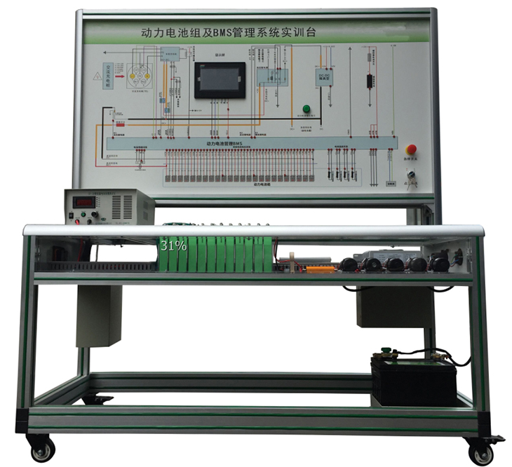 選用新能源車(chē)輛磷酸鐵鋰 動(dòng)力電池包,單體電池(3.2V20AH,共24串),帶CAN總線的一體機(jī)BMS電池管理系統(tǒng),有被動(dòng)均衡功能;真實(shí)地呈現(xiàn)了磷酸鐵鋰動(dòng)力電池包核心零部件之間的連接控制關(guān)系、安裝位置和運(yùn)行參數(shù),以及高壓系統(tǒng)安全注意事項(xiàng),并培養(yǎng)學(xué)員對(duì)磷酸鐵鋰動(dòng)力電池包(BMS)故障分析和處理能力。適用于了解與驗(yàn)證電動(dòng)汽車(chē)的動(dòng)力電池參數(shù)進(jìn)行實(shí)時(shí)監(jiān)控、故障診斷、SOC估算、短路保護(hù)、絕緣檢測(cè)、充放電控制、均衡等功能,并通過(guò)CAN總線的方式與帶CAN通訊的車(chē)載充電機(jī)進(jìn)行信息交互,保障電動(dòng)汽車(chē)高效、可靠、安全運(yùn)行的BMS教學(xué)實(shí)訓(xùn)實(shí)驗(yàn)。