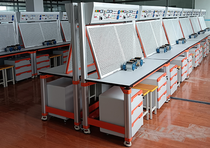 電氣裝配實(shí)訓(xùn)室設(shè)備、電氣自動(dòng)化實(shí)驗(yàn)實(shí)訓(xùn)室設(shè)備主要服務(wù)于電氣自動(dòng)化技術(shù)、機(jī)電一體化技術(shù)、機(jī)械制造自動(dòng)化、數(shù)控技術(shù)等專業(yè)的電類課程的實(shí)驗(yàn)實(shí)訓(xùn)任務(wù),為教師從事科研、教學(xué)研究服務(wù),并承擔(dān)著青年教師下電氣實(shí)驗(yàn)實(shí)訓(xùn)室鍛煉的任務(wù)。電氣實(shí)驗(yàn)實(shí)訓(xùn)室一貫秉承“嚴(yán)謹(jǐn)治學(xué)、勇于探索、大膽實(shí)踐、科學(xué)負(fù)責(zé)”的原則,堅(jiān)持培養(yǎng)學(xué)生獨(dú)立思考、獨(dú)立操作、獨(dú)立分析問(wèn)題的能力,培養(yǎng)運(yùn)用基本理論分析處理實(shí)際問(wèn)題的方法。電氣裝配實(shí)訓(xùn)室、電氣自動(dòng)化實(shí)訓(xùn)室的建設(shè),已逐步形成涵蓋多學(xué)科、多專業(yè)的實(shí)驗(yàn)實(shí)訓(xùn)教學(xué)平臺(tái),根據(jù)學(xué)科發(fā)展和人才培養(yǎng)的需求,建立起了一個(gè)合理分工、緊密銜接,由基礎(chǔ)到綜合的實(shí)驗(yàn)實(shí)訓(xùn)教學(xué)體系。電氣裝配實(shí)訓(xùn)室、電氣自動(dòng)化實(shí)訓(xùn)室分別為電工技術(shù)實(shí)驗(yàn)實(shí)訓(xùn)室、電子技術(shù)實(shí)驗(yàn)實(shí)訓(xùn)室、高級(jí)電工實(shí)訓(xùn)室、微機(jī)控制與仿真實(shí)訓(xùn)室、電氣控制綜合實(shí)訓(xùn)室、自動(dòng)生產(chǎn)線實(shí)訓(xùn)室、數(shù)控設(shè)備維修實(shí)訓(xùn)室、電子產(chǎn)品裝配實(shí)訓(xùn)室。