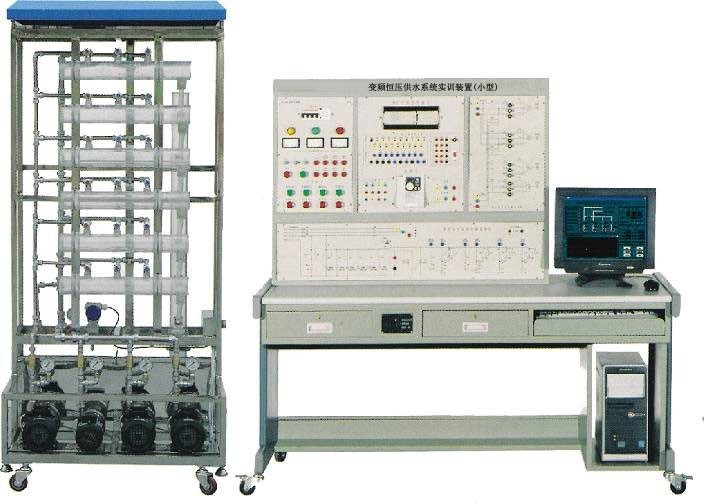 變頻恒壓供水系統(tǒng)實(shí)訓(xùn)裝置,集PLC、變頻調(diào)速、過(guò)程控制、工程組態(tài)技術(shù)于一體。它由六層住宅消防、生活供水系統(tǒng)(實(shí)物模型),控制平臺(tái)兩大部分組成,包含了可編程控制器、變頻器、變頻磁力驅(qū)動(dòng)泵、休眠泵、消防泵、壓力變送器、壓力儀表、輸水管道、消防栓、家用水龍頭、蓄水池等工程設(shè)備?刂破脚_(tái)采用PLC+變頻器的開(kāi)放式控制結(jié)構(gòu),可以完成多種模式下的樓層恒壓供水實(shí)訓(xùn)實(shí)訓(xùn),為教學(xué)研究變頻恒壓供水技術(shù)提供一個(gè)開(kāi)放的操作平臺(tái)。它是一款適合于大學(xué)及中、高職院校電氣自動(dòng)化、樓宇自動(dòng)化、建筑電氣、智能建筑等專業(yè)的綜合型技能實(shí)訓(xùn)考核設(shè)備。