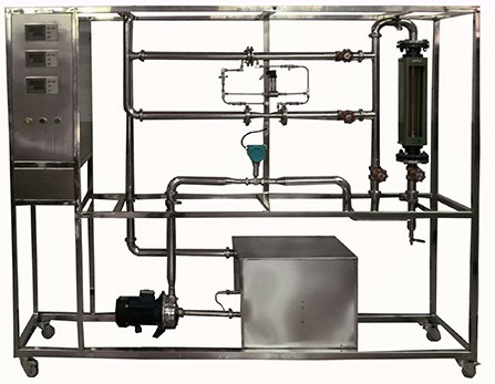 1、水轉(zhuǎn)子流量計(jì): 流量范圍 0.4~4m3/h。 2、孔板流量計(jì): 流量范圍0.4~8m3/h,孔板喉徑:Φ17mm。 3、文丘里流量計(jì):流量范圍0.4~8m3/h,文丘里喉徑:Φ13mm。 4、渦輪流量計(jì):流量范圍0.4~8.0m3/h,4-20mA遠(yuǎn)傳輸出,流量檢測(cè)機(jī)構(gòu)。 5、壓差傳感器:量程0~150KPa,4-20mA遠(yuǎn)傳輸出,差壓檢測(cè)機(jī)構(gòu)。 6、304不銹鋼離心泵:功率550W。 7、水箱:304不銹鋼材質(zhì),容積≥80L,帶貯水排空底閥,管路循環(huán)回水與泵吸入口間隔板設(shè)計(jì)。 8、管路:304衛(wèi)生級(jí)不銹鋼材質(zhì),采用不銹鋼快裝活接與管路連接;管道活接連接渦輪流量計(jì)。 9、閥門:采用304不銹鋼閥和優(yōu)質(zhì)銅閥。 10、溫度傳感器:Pt100,分辨率0.1℃,精度0.5%,數(shù)字顯示。 11、宇電AI501 流量數(shù)字顯示儀。 宇電AI501 溫度數(shù)字顯示儀。 宇電AI501 壓差數(shù)字顯示儀。 12、電器:接觸器、開關(guān)、漏電保護(hù)空氣開關(guān)。 13、304不銹鋼儀表柜:測(cè)控、電器設(shè)備在實(shí)驗(yàn)架上。 14、外形尺寸:1900*500*1800mm(長(zhǎng)×寬×高),304不銹鋼框架,帶移動(dòng)腳輪及禁錮腳。 15、工程化標(biāo)識(shí):包含設(shè)備位號(hào)、管路流向箭頭及標(biāo)識(shí)、閥門位號(hào)等工程化設(shè)備理念配套,使學(xué)生處于安全的實(shí)驗(yàn)操作環(huán)境中。 |