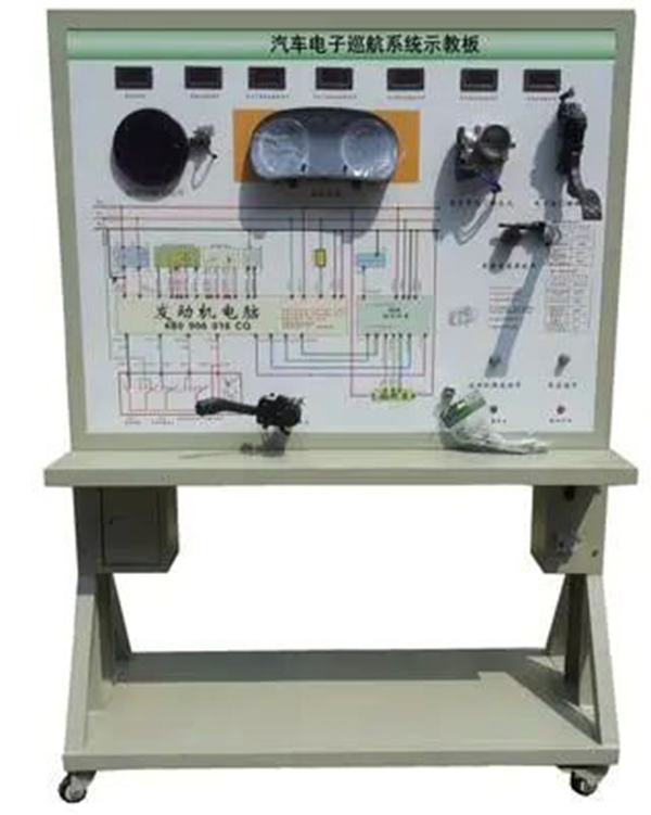 2.示教板面板采用4mm厚耐腐蝕、耐創(chuàng)擊、耐污染、防火、防潮的高級鋁塑板,表面經(jīng)特殊工藝噴涂底漆處理;面板打印有永不褪色的彩色電路圖,表面噴涂光油;學(xué)員可直觀對照電路圖和實(shí)物,認(rèn)識和分析汽車電子巡航系統(tǒng)的工作原理。