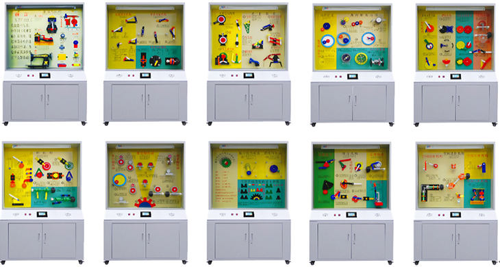 機(jī)械元件陳列柜是根據(jù)大、中專(zhuān)院校、技校、職業(yè)學(xué)校的機(jī)械原理教學(xué)大綱設(shè)計(jì)的電化教學(xué)設(shè)備。本陳列柜具有多功能語(yǔ)音播放控制系統(tǒng),語(yǔ)音解說(shuō)同步演示,采用單獨(dú)驅(qū)動(dòng)由電腦或電子設(shè)備控制運(yùn)轉(zhuǎn)演示,可由遙控控制順序自動(dòng)運(yùn)行講解,又能根據(jù)教材、教學(xué)需要而遙控任意選擇還是單獨(dú)演示。模型材料采用進(jìn)口有機(jī)板制造,板面附有必要的圖表和文字說(shuō)明,演示形象逼真,運(yùn)行可靠,制作工藝美觀(guān),使用本陳列柜可提高教學(xué)效果,節(jié)約學(xué)時(shí)是一套現(xiàn)代化機(jī)械課程教學(xué)應(yīng)用實(shí)驗(yàn)室設(shè)備。
