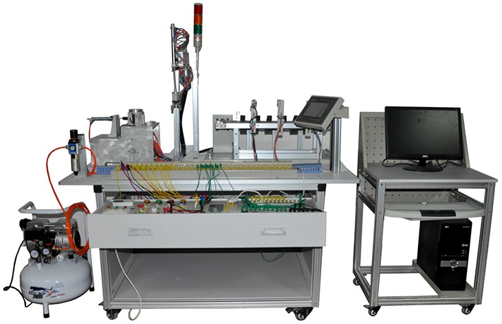本設(shè)備主要包括實訓(xùn)臺架、典型的機(jī)電一體化設(shè)備的機(jī)械部件、PLC模塊、變頻器模塊、按鈕模塊、電源模塊、模擬生產(chǎn)設(shè)備實訓(xùn)模塊、接線端子排和各種傳感器等組成。整體結(jié)構(gòu)采用開放式和拆裝式,實訓(xùn)裝置用于機(jī)械部件組裝,可根據(jù)現(xiàn)有的機(jī)械部件組裝生產(chǎn)設(shè)備,也可添加機(jī)械部件組裝其他生產(chǎn)設(shè)備,使整個裝置能夠靈活的按教學(xué)或競賽要求組裝具有生產(chǎn)功能的機(jī)電一體化設(shè)備。