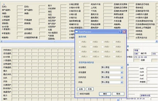軟件可實(shí)現(xiàn)對(duì)內(nèi)機(jī)的控制,,可以對(duì)1-64臺(tái)內(nèi)機(jī)的狀態(tài)進(jìn)行設(shè)定。