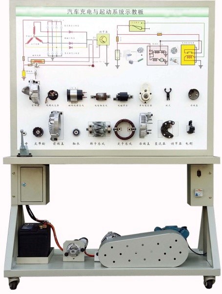 4.示教板面板上安裝有起動機(jī)與發(fā)電機(jī)總成分解部件,可直觀認(rèn)識起動機(jī)與發(fā)電機(jī)的組成結(jié)構(gòu)。