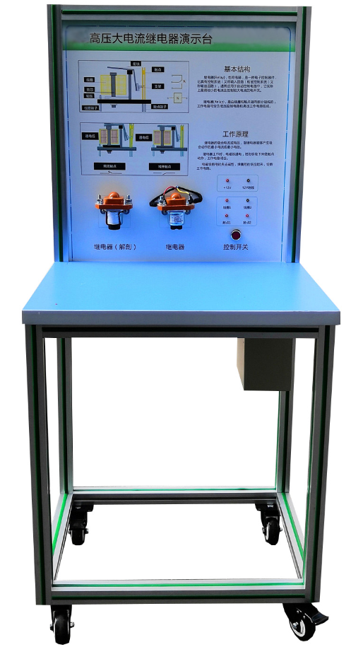 五、基本配置:高壓大電流繼電器EV200AAANA(兩件,其中一件解剖),高壓大電流繼電器EVR200CE(兩件,其中一件解剖),數(shù)字式萬用表,開關(guān)電源,手動開關(guān),可移動實訓(xùn)臺(帶原理面板)。