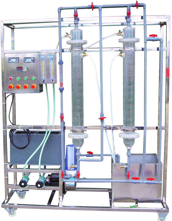 離子交換實(shí)驗(yàn)裝置由陰、陽(yáng)交換柱、耐酸堿泵、離子交換樹(shù)脂、液體轉(zhuǎn)子流量計(jì)、原水箱、淡水槽、濃水槽、再生液投配裝置、防腐工程塑料管道閥門(mén)、電導(dǎo)率儀、不銹鋼框架、控制屏等組成。