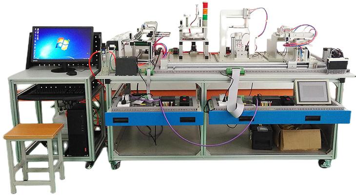 自動化生產(chǎn)線實(shí)訓(xùn)考核系統(tǒng),可以培養(yǎng)和提高學(xué)生專業(yè)綜合能力,是一種重要的實(shí)訓(xùn)設(shè)備。自動化生產(chǎn)線實(shí)訓(xùn)系統(tǒng)、基于PLC技術(shù)的自動化生產(chǎn)線實(shí)訓(xùn)考核系統(tǒng),可以培養(yǎng)和提高學(xué)生專業(yè)綜合能力,是一種重要的實(shí)訓(xùn)設(shè)備。自動化生產(chǎn)線實(shí)訓(xùn)系統(tǒng)整體包括自動供料、檢測傳輸、檢測加工、自動裝配、自動分揀等工序,很好的將機(jī)械技術(shù)、微電子技術(shù)、電工電子技術(shù)、傳感測試技術(shù)、接口技術(shù)、信息變換技術(shù)、網(wǎng).絡(luò)通信技術(shù)等多種技術(shù)有機(jī)地結(jié)合。該系統(tǒng)中自動分揀站的設(shè)計過程,包括系統(tǒng)硬件設(shè)計、PLC控制設(shè)計和程序設(shè)計方法。現(xiàn)代化的自動生產(chǎn)設(shè)備的最大特點(diǎn)是它的綜合性和系統(tǒng)性,在這里,機(jī)械技術(shù)、微電子技術(shù)、電工電子技術(shù)、傳感測試技術(shù)、接口技術(shù)、信息變換技術(shù)、網(wǎng)絡(luò)通信技術(shù)等多種技術(shù)有機(jī)地結(jié)合,并綜合應(yīng)用到生產(chǎn)設(shè)備中:而系統(tǒng)性指的是,生產(chǎn)線的傳感檢測、傳輸與處理、控制、執(zhí)行與驅(qū)動等機(jī)構(gòu)在微處理單元的控制下協(xié)調(diào)有序地工作,有機(jī)地融合在一起。可編程序控制器(PLC)以其高抗干擾能力、高可靠性、高性能價格比且編程簡單而廣泛地應(yīng)用在現(xiàn)代化的自動生產(chǎn)設(shè)備中,擔(dān)負(fù)著生產(chǎn)線的大腦一微 處理單元的角色。因此,培養(yǎng)掌握機(jī)電一體化技術(shù),掌握PLC技術(shù)及PLC網(wǎng)絡(luò)技術(shù)的技術(shù)人材是當(dāng)務(wù)之急。而一套基于PLC技術(shù)的自動化生產(chǎn)線實(shí)訓(xùn)考核設(shè)備可以模擬一個與實(shí)際生產(chǎn)情況+分接近的控制過程,使學(xué)習(xí)者得到一個非常接近于實(shí)際的教學(xué)設(shè)備環(huán)境,從而縮短了理論教學(xué)與實(shí)際應(yīng)用之間的距離。自動分揀站需完成對上一單元送來的已加工、裝配的工件進(jìn)行分揀。使不同顏色的工件從不同的料槽分流的功能。當(dāng)輸送站送來工件放到傳送帶上并為入料口光電傳感器檢測到時,即啟動變頻器,工件開始送入分揀區(qū)進(jìn)行分揀。上海碩博弘揚(yáng)大國工匠精神, 發(fā)展職業(yè)教育,應(yīng)用教學(xué)設(shè)備,為企業(yè)培養(yǎng)高技能人才,而專業(yè)生產(chǎn):光機(jī)電一體化(自動生產(chǎn)線)實(shí)訓(xùn)裝置、灌裝自動化生產(chǎn)線實(shí)訓(xùn)裝置、工業(yè)自動生產(chǎn)線實(shí)訓(xùn)裝置 、工業(yè)控制模擬實(shí)訓(xùn)裝置 、機(jī)電一體化組合實(shí)訓(xùn)平臺 、機(jī)電一體化綜合實(shí)訓(xùn)考核裝置、自動化生產(chǎn)安裝與調(diào)試實(shí)訓(xùn)裝置 、光機(jī)電一體化高速分揀實(shí)訓(xùn)系統(tǒng) 、典型機(jī)電設(shè)備安裝與控制實(shí)訓(xùn)裝置、模塊式柔性自動環(huán)形生產(chǎn)線實(shí)驗(yàn)系統(tǒng)(帶機(jī)器人工程型)、立體停車庫實(shí)物教學(xué)實(shí)驗(yàn)裝置、機(jī)電一體化柔性生產(chǎn)線加工實(shí)訓(xùn)系統(tǒng)(5站)、網(wǎng)絡(luò)型模塊式柔性自動化生產(chǎn)線實(shí)驗(yàn)系統(tǒng)、模塊式柔性自動環(huán)形生產(chǎn)線實(shí)驗(yàn)系統(tǒng)(工程型)、柔性生產(chǎn)制造實(shí)驗(yàn)系統(tǒng)(工程型)、現(xiàn)代物流倉儲自動化實(shí)驗(yàn)系統(tǒng)、運(yùn)動實(shí)訓(xùn)裝置、循環(huán)搬運(yùn)自動控制實(shí)訓(xùn)裝置、平面雙軸運(yùn)行控制實(shí)訓(xùn)裝置、工業(yè)機(jī)械手實(shí)訓(xùn)裝置、物料分揀實(shí)訓(xùn)裝置、機(jī)械手實(shí)訓(xùn)裝置 、立體倉庫實(shí)訓(xùn)裝置、十字路口交通燈實(shí)訓(xùn)系統(tǒng)、機(jī)電液氣一體化綜合實(shí)訓(xùn)裝置、光機(jī)電一體化高速分揀實(shí)訓(xùn)系統(tǒng)、步進(jìn)伺服控制綜合實(shí)訓(xùn)平臺、光機(jī)電氣一體化控制實(shí)訓(xùn)系統(tǒng)、 光機(jī)電一體化綜合實(shí)訓(xùn)考核裝置、光機(jī)電一體化實(shí)訓(xùn)考核裝置、光機(jī)電一體化實(shí)訓(xùn)考核裝置、光機(jī)電氣一體化控制實(shí)訓(xùn)系統(tǒng)、自動生產(chǎn)線拆裝與調(diào)試實(shí)訓(xùn)裝置、柔性自動化生產(chǎn)線實(shí)訓(xùn)系統(tǒng)。