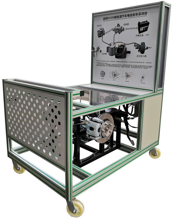 吉利EV450電動(dòng)車電動(dòng)真空泵(2件,1件解剖)、電動(dòng)真空泵控制單元、真空壓力傳感器、剎車真空助力器、剎車總泵與踏板、剎車真空罐(2件,1件解剖)、剎車油瓶、開(kāi)關(guān)電源12V30A、點(diǎn)火開(kāi)關(guān)、真空表、壓力表(0~100kg/psi)、左右前輪液壓剎車盤總成、左右半軸總成、電機(jī)與變頻器(220V4KW1400轉(zhuǎn)電機(jī),220V5KW變頻器)、電機(jī)傳動(dòng)帶與輪盤一體化全鋁合金型材搭建的移動(dòng)臺(tái)架(1500×1000×1700mm ,帶自鎖腳輪裝置,帶安裝檢測(cè)端子的原理面板948×898mm)、故障模擬與排除裝置、設(shè)備操作說(shuō)明書。