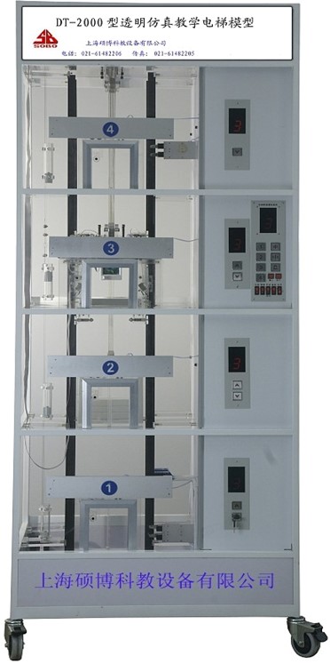 我公司的DT系列透明電梯是根據(jù)最常見的升降式電梯結構,采用鋼管焊接一體而成,表面經(jīng)過磷化噴塑處理、具有良好的結構剛性。為了便于教學,電梯主要機構部件均采用透明有機材料制成 (包括:限速器、轎廂、層門及門廳立面、轎門、轎廂、機房底板、導軌支架……)為了使電梯運行控制更加精密可靠逼真,設計了與實際電梯比例縮小的鋁合金轎廂對重導軌、及轎門門機導軌、層門導軌。